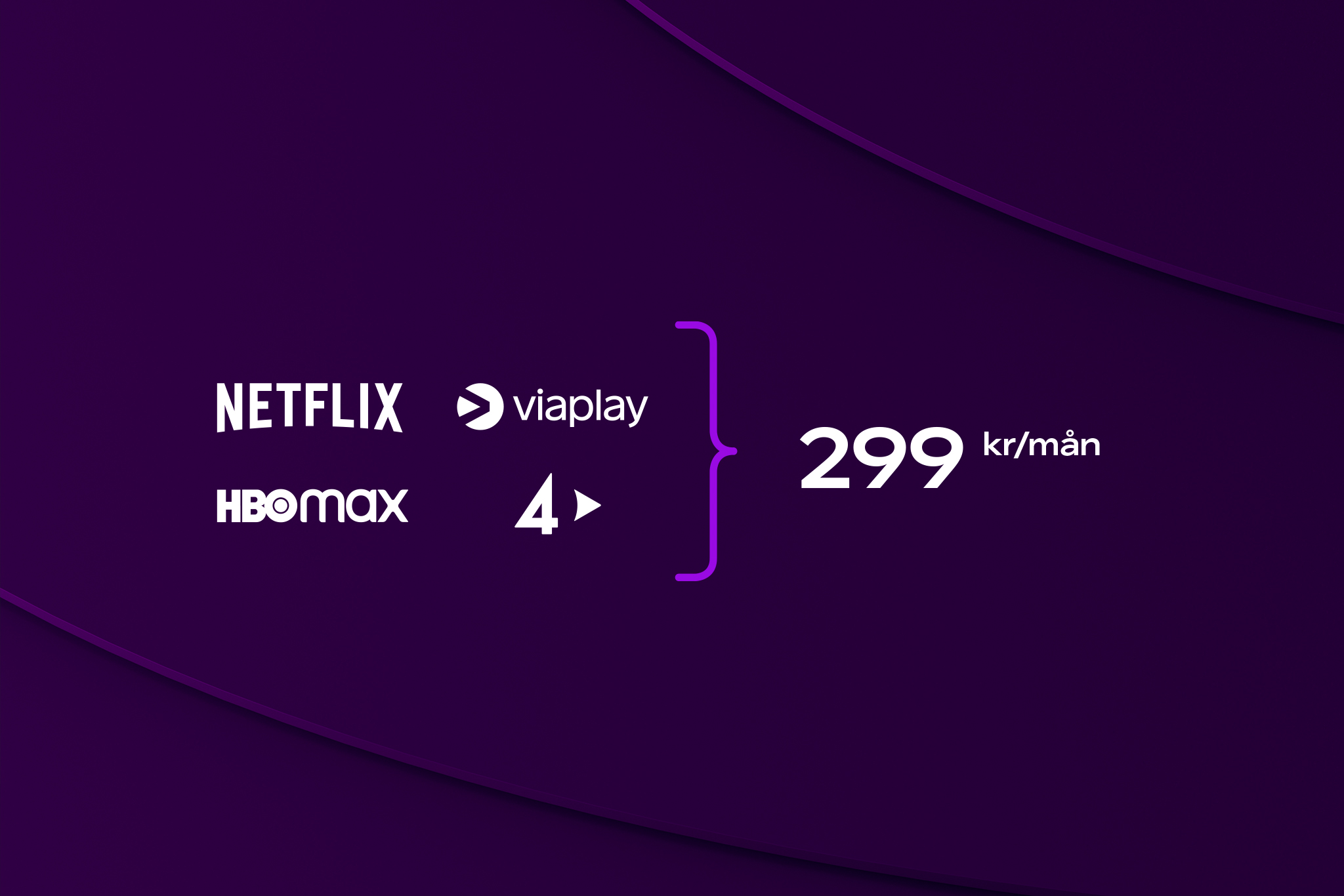 Rabatten gäller i 6 månaderIngen bindningstidFyra stortjänster för massor av streaming och tv. Fler favoriter i ett och samma paket.